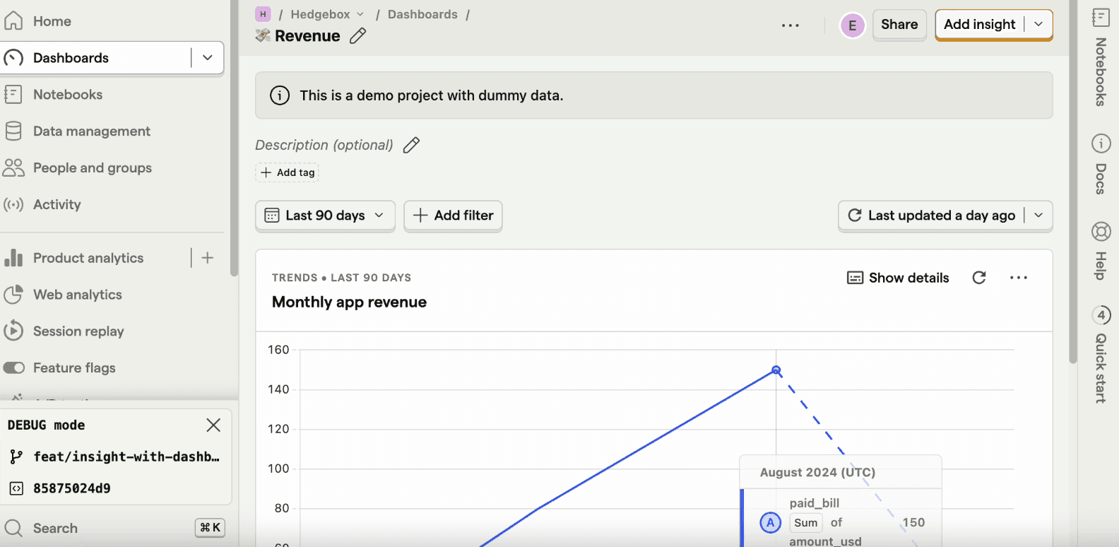 The most notable is that you can now click into an insight from a dashboard and it'll automatically show the dashboard filters that have been applied.
